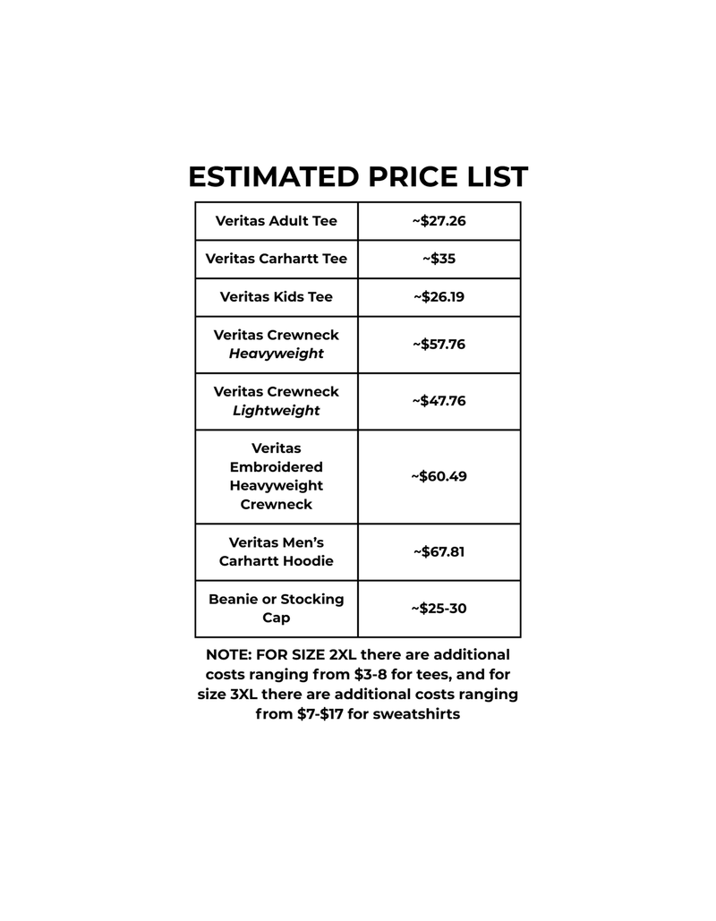 Please fill out the form below if you are interested in merch. We are trying to get an estimate of the quantity of each item. The higher the quantity, the lower we can charge. Below I will provide an *estimated* price list, ( including tax and shipping). Prices may decrease as we meet certain bulk order thresholds.