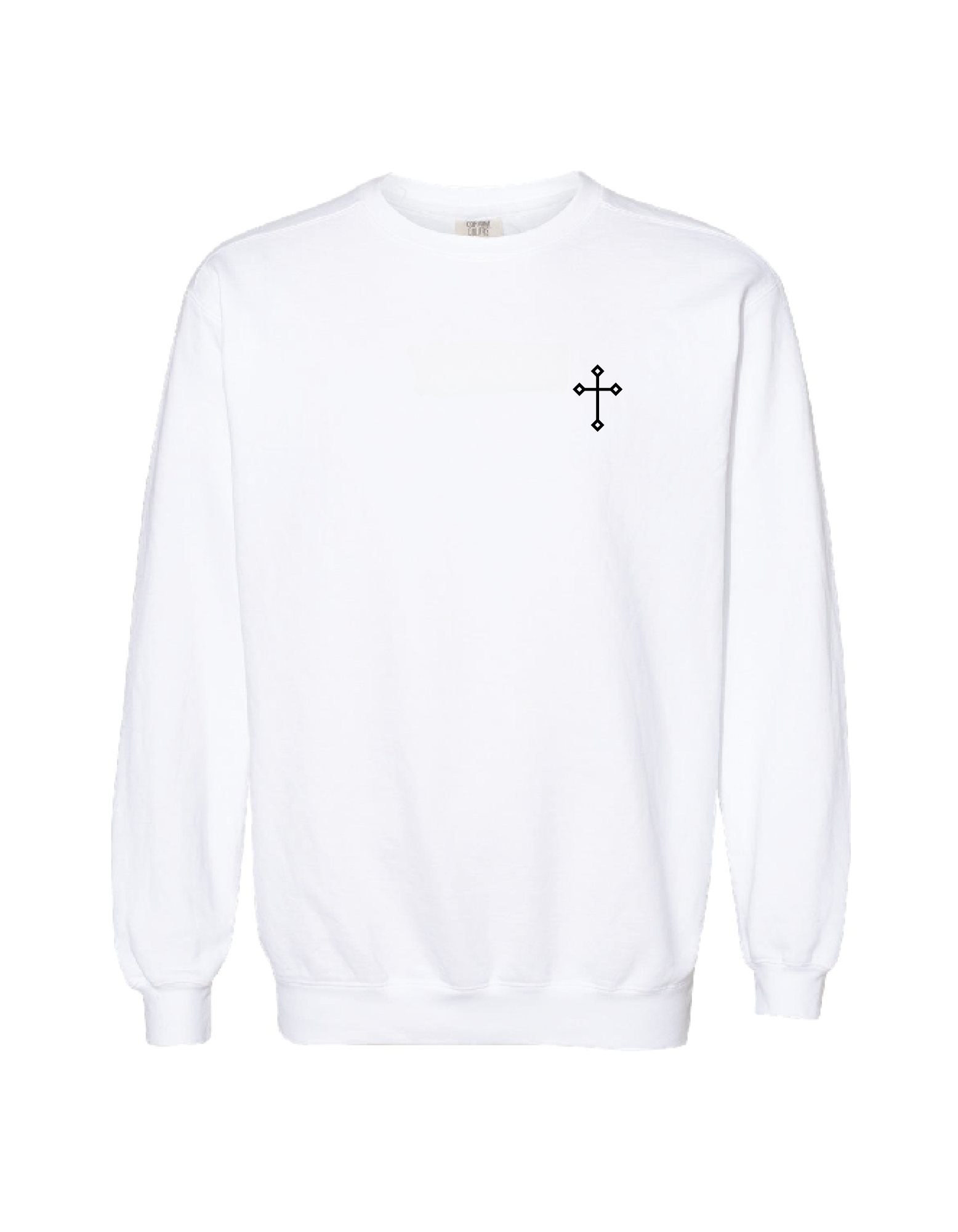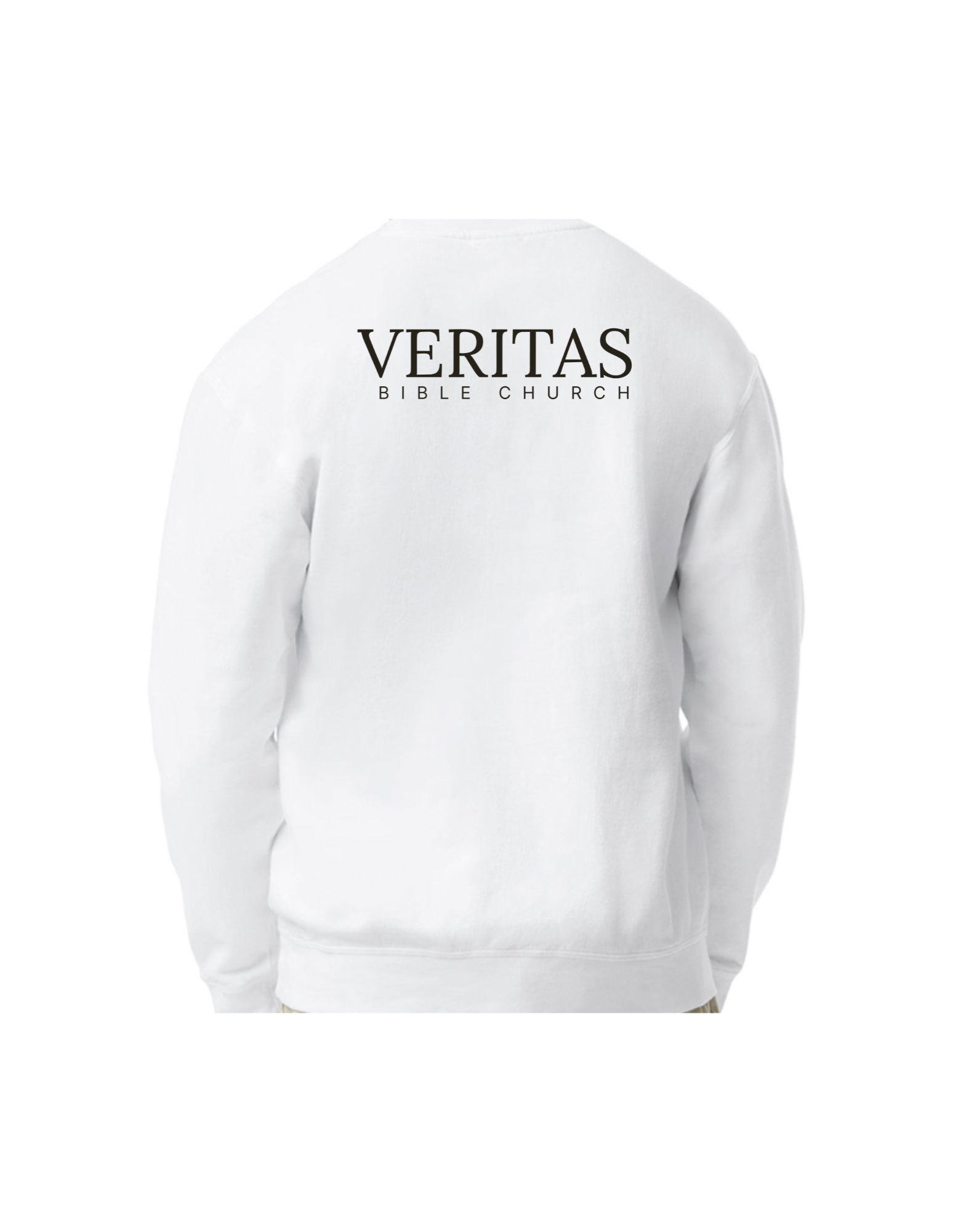 This is our printed crewneck with the Veritas Cross on front, and Veritas Bible Church on the back. Comfort Colors brand. For men, I would consider sizing up. The sweatshirt is unisex, but that doesn't always adjust for those differences!